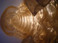 The only one of my sculptures cast not in bronze but in transparent polyurethane, this sculpture is illuminated from within so as to highlight the surface modelling I did of the inside of the exuvia or shed, as well as the outside morphology.